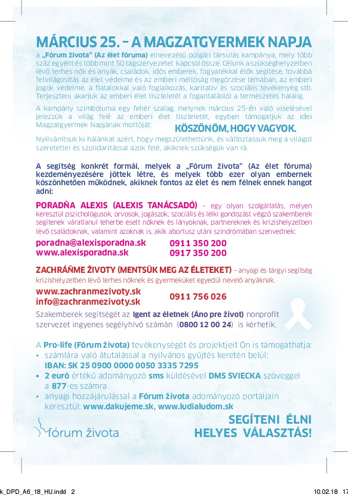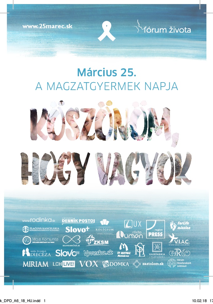 Aj takýmto spôsobom chceme vplývať na spoločnosť, aby sme my žijúci brali ešte vážnejšie ľudský život, ktorý je tak jedinečný, neopakovateľný, krehký a zázračný!