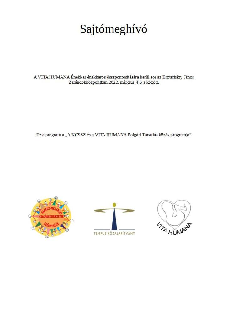 Somorjai VITA HUMANA Énekkar énekkarosai családjaikkal, mely havi rendszerességgel színesíti a Somorjai Nagyboldogasszony Plébániatemplom vasárnapi 11:00 órási szentmiséjét, a KCSSZ-nek és Tempus Közalapítványnak köszönhetően énekkaros összpontosításon vesz részt 2022. Március 4-6-án Alsóbodokon, az Eszterházy Zarándokközpontban.